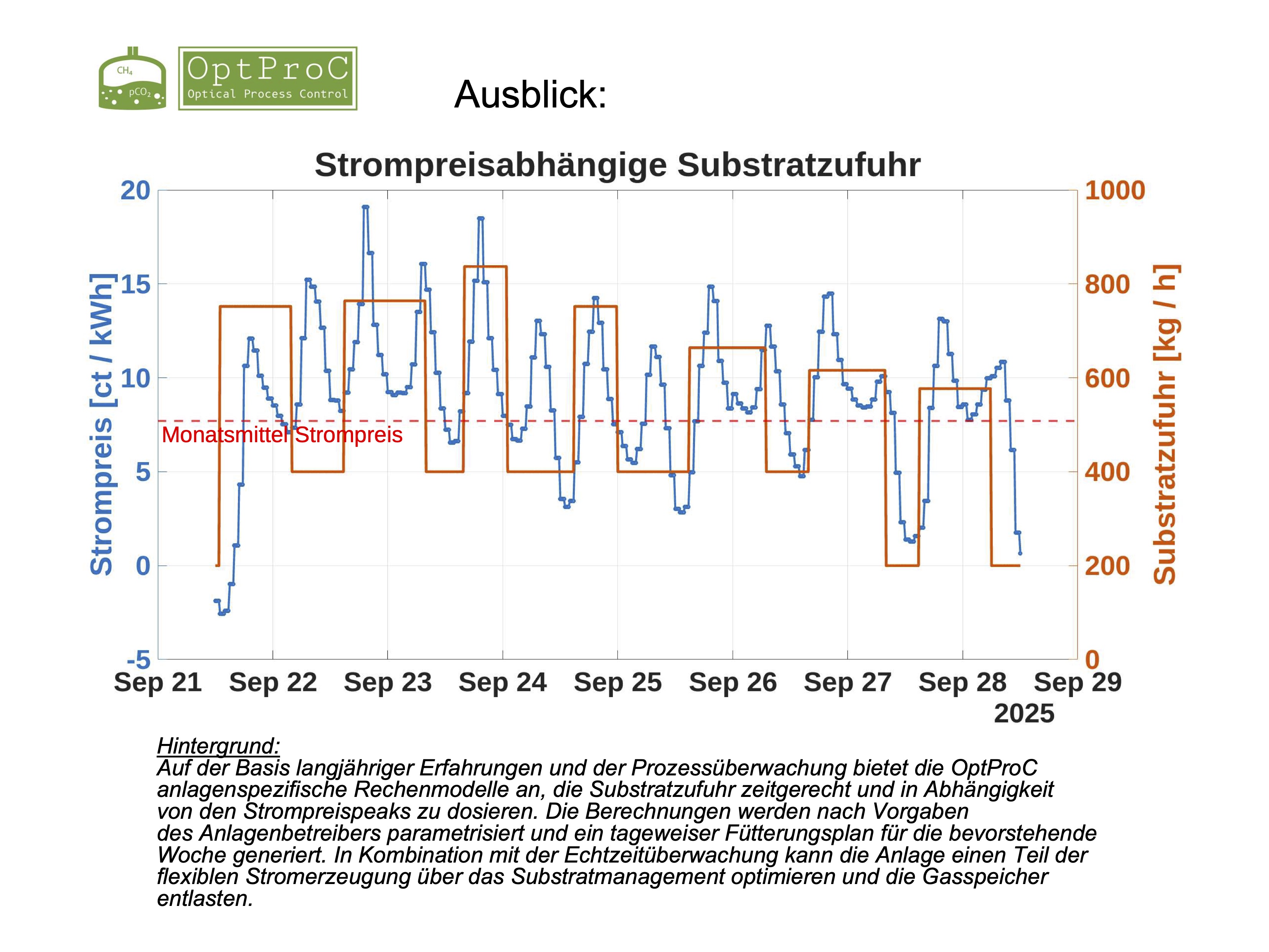 - • Tagesspitzen der Strompreise mit gesteuerter Substratzufuhr abfahren